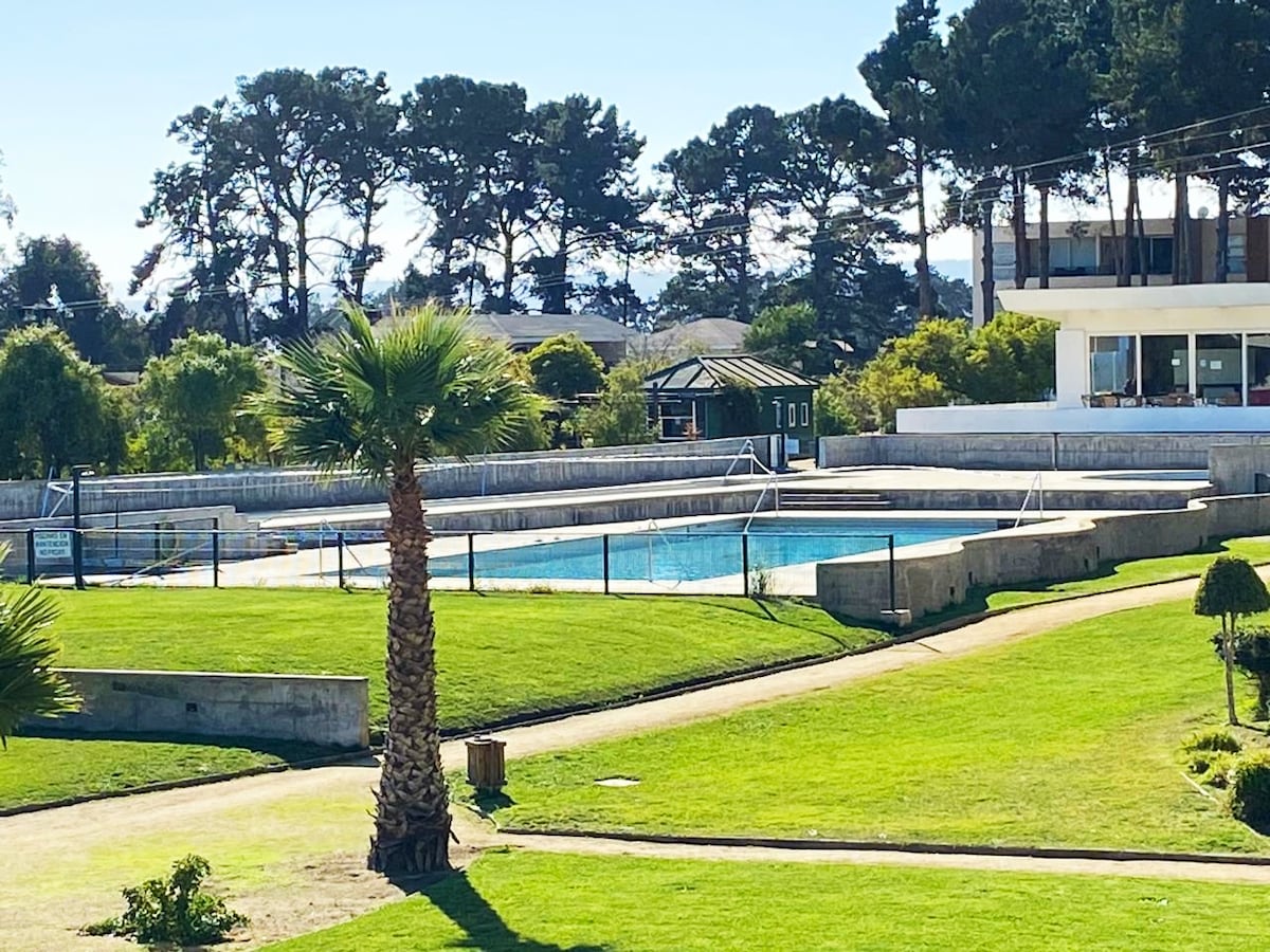 Agradable departamento en condominio familiar, ideal para descansar y relajarse. Full equipado con Kayak doble, parrilla , wifi ilimitado, Netflix , Max y Disney Plus. Ubicado en 5to piso, hermosa vista y malla de seguridad. Condominio con 2 restaurantes y cafeterías, canchas de voleibol, fútbol, tenis y tobogán. Amplias áreas verdes y juegos de niños. Salida directa a la playa, supermercados a pasos. Sábanas y toallas no incluidas. Piscina temperada y gimnasio solo para socios.