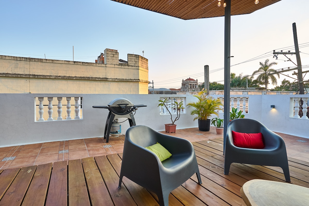 This charming 2 bedroom corner house is located in the walled colonial city of Santo Domingo. It’s only a few steps away from historical attractions, museums, restaurants, coffee shops, bars, souvenir shops, bakeries, supermarket and lovely squares. The beautiful covered terrace, overlooking the rooftops of the old town with living area, hammock and BBQ is perfect for a relaxing afternoon or evening.