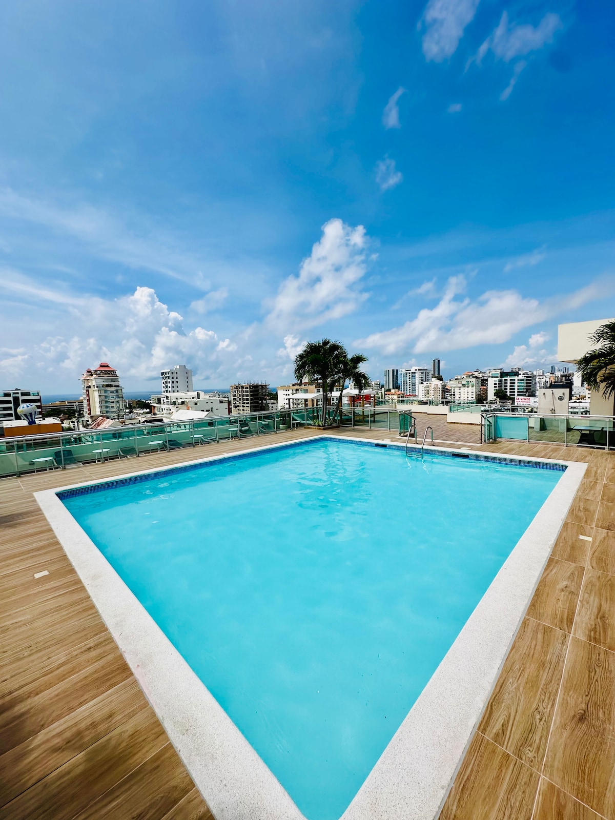 Experience luxury in this modern 2-bedroom apartment in Piantini, Santo Domingo’s most exclusive area. Surrounded by top restaurants, shopping centers, and entertainment, it's perfect for business travelers, couples, or families. Enjoy a spacious, stylish living space, a private balcony with city views, and access to a rooftop pool, gym, and lounge areas. The building offers 24/7 front desk staff for a seamless experience.