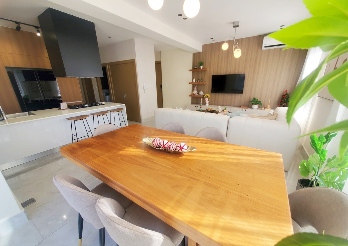 Experience upscale living in the heart of Piantini, Santo Domingo’s most exclusive area. This beautifully designed 2-bedroom apartment is fully equipped for short or long stays, featuring a modern kitchen, high-speed Wi-Fi, and full A/C throughout. Enjoy a stunning rooftop with pool, lounge areas, and city views—perfect for relaxing after a day out. Ideally located near top restaurants, shopping centers, and business hubs.