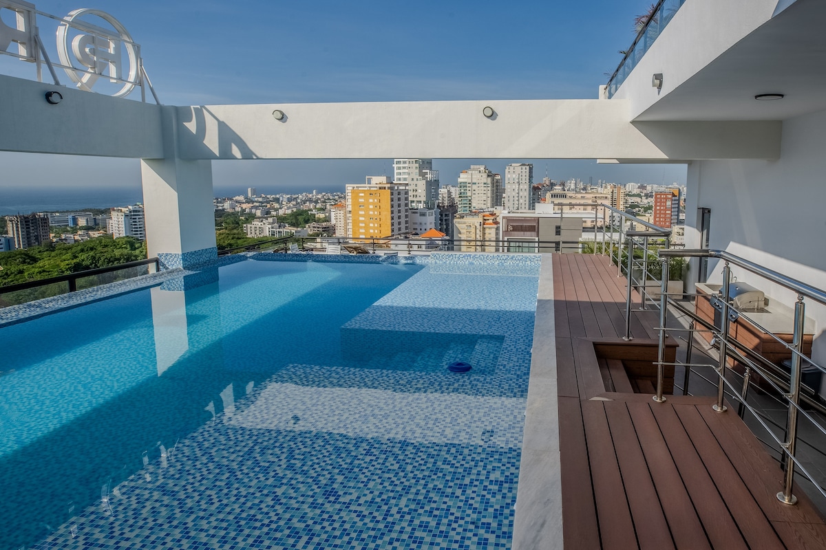 时尚1卧室•泳池、健身房和电影院•圣多明各