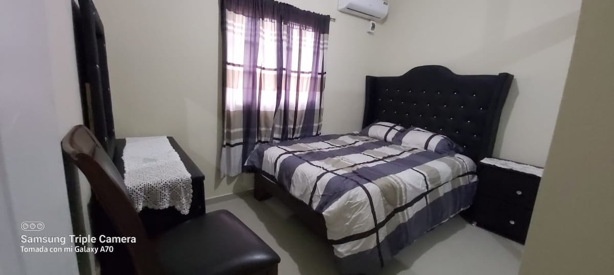 Cómodo apartamento de 2 habitaciones para 4 personas. Perfecto para trabajo remoto o vacaciones familiares. Cocina equipada, aire acondicionado y wifi rápido. A 7 minutos de centros comerciales y otras comodidades. Inglés Cozy 2-bedroom apartment for up to 4 guests. Perfect for remote work or family vacations. Fully equipped kitchen, air conditioning, and fast Wi-Fi. Just 7 minutes from shopping centers and local conveniences.