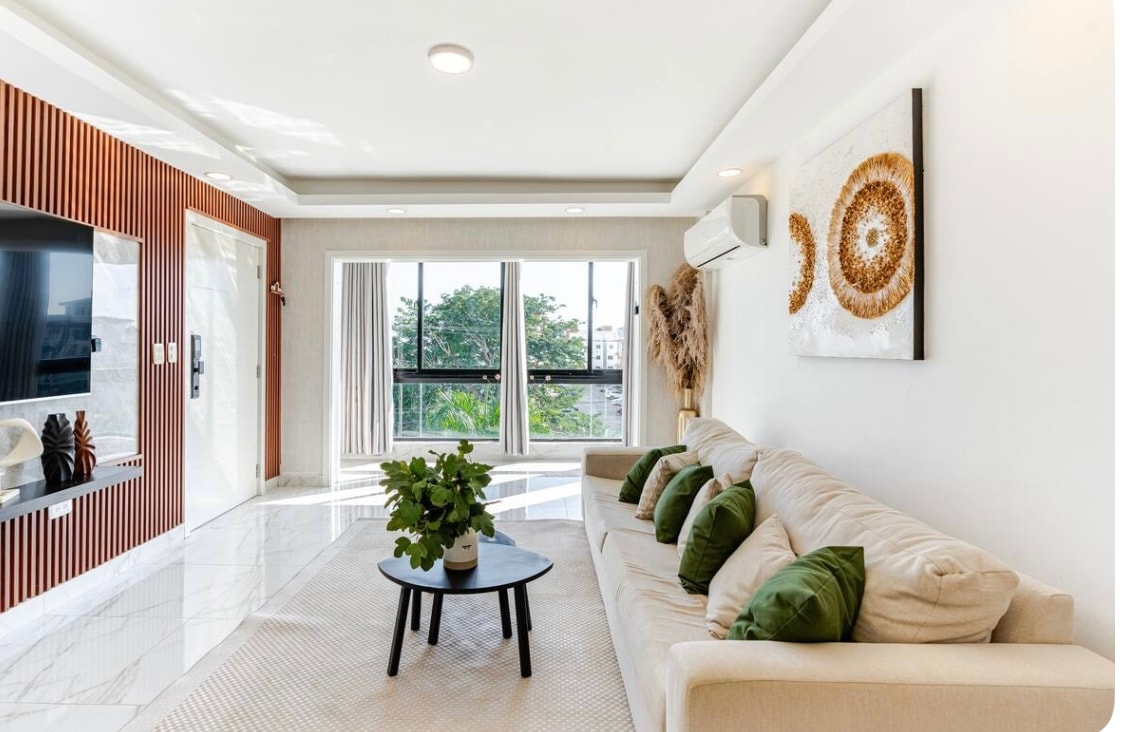 Experience a modern 3-level penthouse in the heart of Evaristo Morales. With 5 bedrooms, spacious living areas, a private terrace, and elegant design, it’s ideal for families and groups. Steps from Gold’s Gym, Smart Fit, supermarkets, restaurants, and banks, and minutes from BlueMall, Acropolis, and Ágora Mall. Enjoy comfort, style, and the best location in Santo Domingo.