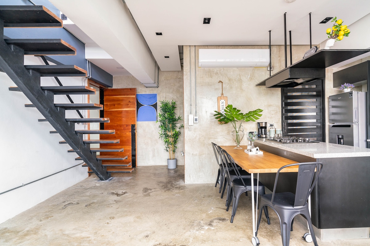 Bright & Stylish Loft Suite at Fixie Lofts Colonial Villa Suites. This loft suite offers a bright, double-height space with an en-suite bathroom. Enjoy exceptional light and quietness, plus an equipped kitchen (fridge, stove, microwave) for your convenience in a privileged location. Not every street in zona is as safe. Our tranquil garden and scenic pool provide a private villa ambiance. We were featured in Condé Nast Traveler and AD. Check out other loft suites on our Airbnb profile.