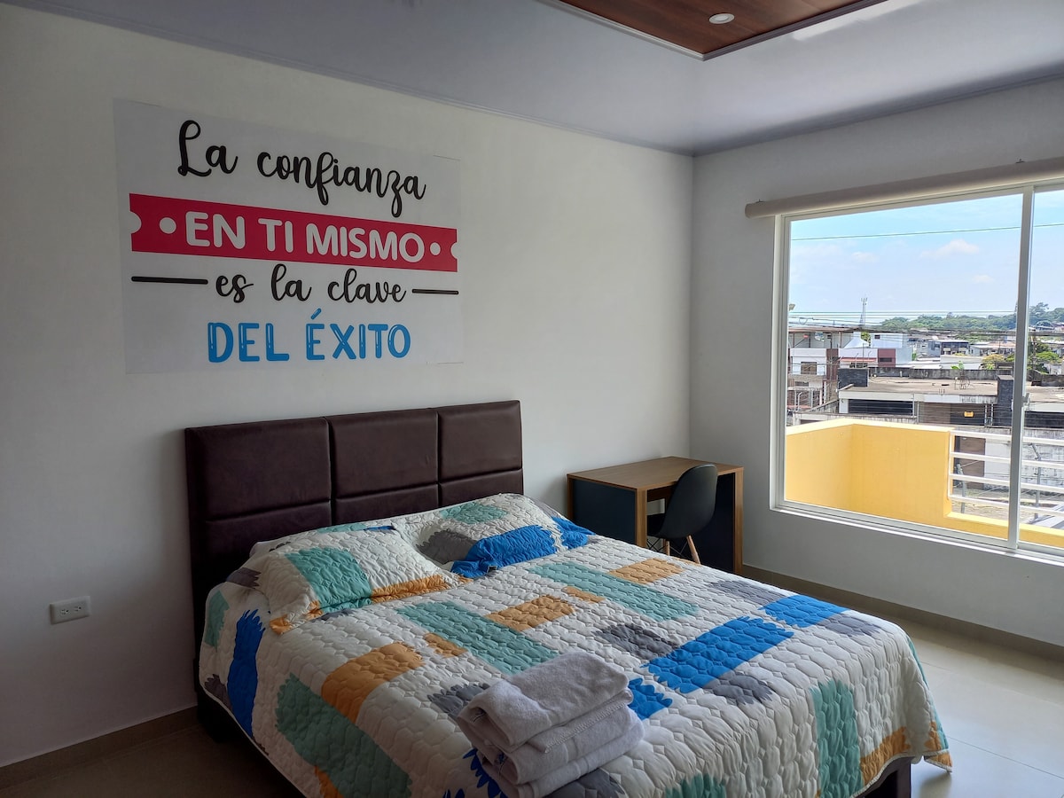 Suite de lujo en el Corazón de la Ciudad. Permítase disfrutar de una experiencia inigualable en nuestra suite, ubicada estratégicamente en la zona céntrica de la ciudad, cerca del Shoping, supermaxi, bancos e instituciones estatales. Cada espacio ha sido diseñado con especial atención al detalle, combinando confort, elegancia y funcionalidad para garantizar una estadía placentera. Incluye: - Aire acondicionado - Agua caliente - TV ( Netflix, HBO)