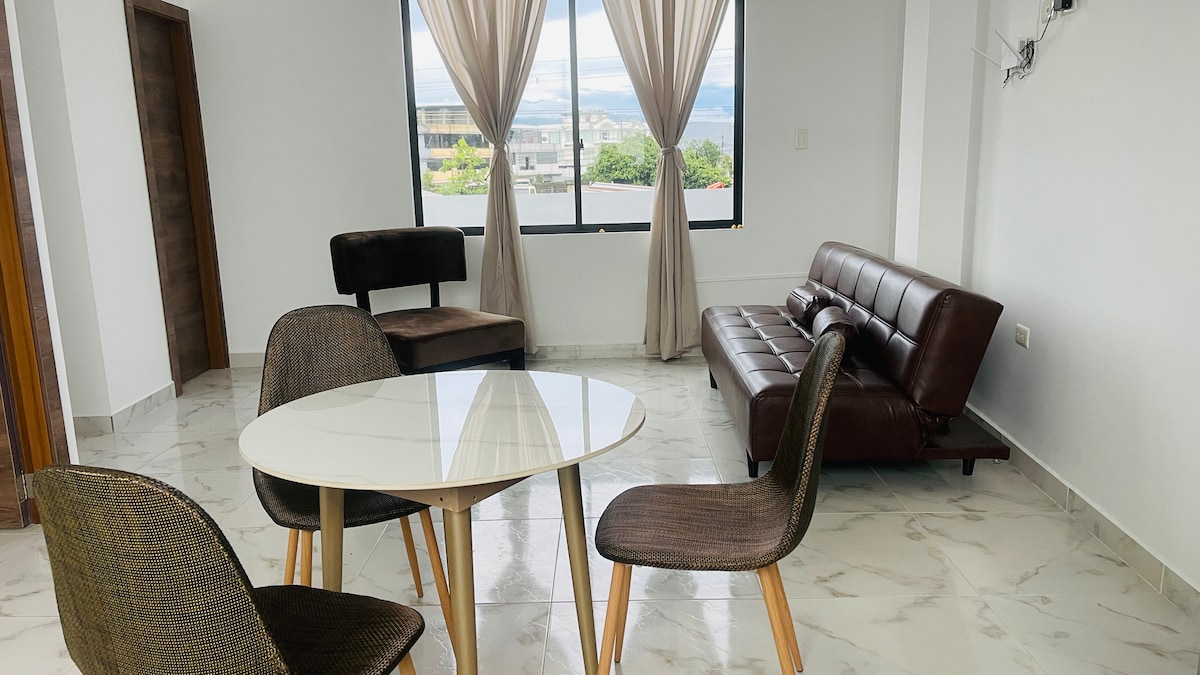 Suite Exclusiva en el Corazón de la Ciudad. Permítase disfrutar de una experiencia inigualable en nuestra suite, ubicada estratégicamente en la zona céntrica de la ciudad, cerca del Shoping, supermaxi, bancos e instituciones estatales. Cada espacio ha sido diseñado con especial atención al detalle, combinando confort, elegancia y funcionalidad para garantizar una estadía placentera. Incluye: - Aire acondicionado - Agua caliente - TV ( Netflix, HBO)