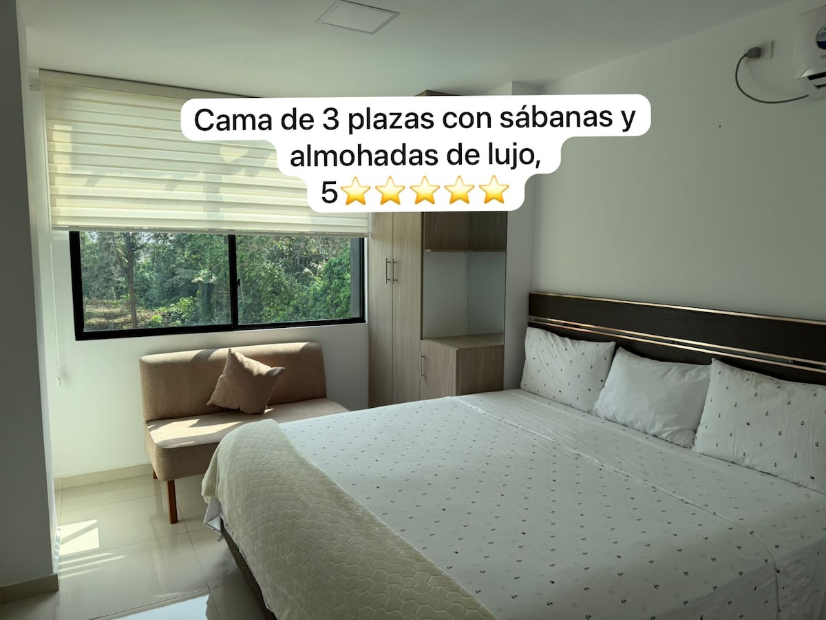 Disfruta de una experiencia única en nuestra suite moderna, segura y elegante, ubicada en una zona privada en pleno corazón de la ciudad. Relájate con una hermosa vista verde y aprovecha el área social con piscina, jacuzzi y mesa de ping pong. Equipada con internet de alta velocidad, es ideal para viajes de ocio o negocios. Aquí encontrarás el equilibrio perfecto entre comodidad, exclusividad y cercanía.