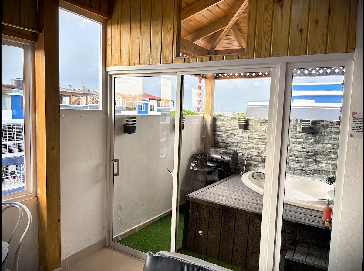 Acogedor, fresco y buena iluminación. Nuestros huéspedes tienen acceso gratuito a nuestra área social en el rooftop. Perfecto para parejas o amigos. Seguridad 24h, portón eléctrico, TV con Netflix, WiFi. A 2 mins. de estaciones de combustibles, a 5 mins del supermercado Bravo, Jumbo, Sirena, Pricesmart , McDonald, Wendy’s, Taco Bell, Pizza Hut, Little Caesars, Burger King, KFC, etc. A 30 mins del Aeropuerto de Las Américas y de la playa Boca Chica.