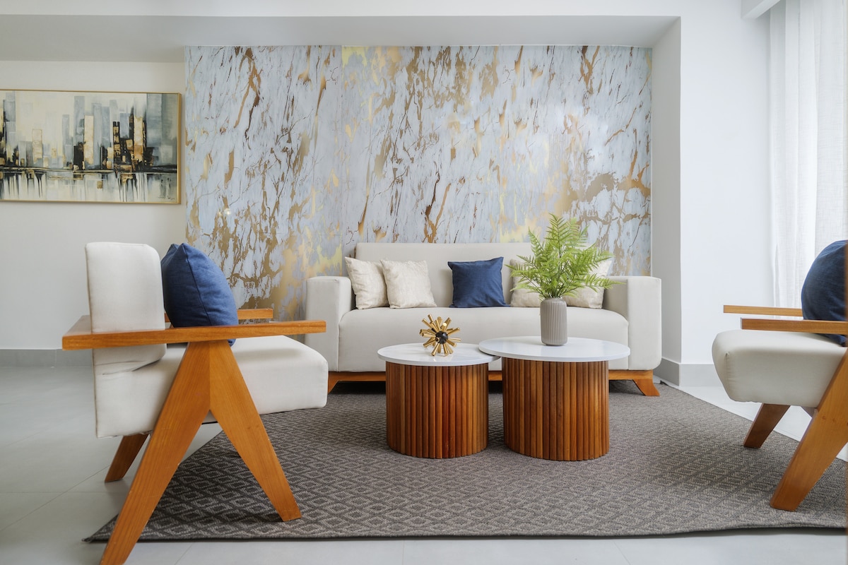 We offer a free fruit basket, soda, coffee, and a water dispenser as a welcome gift! Relax in a cozy apartment with all comforts, communal spaces, a jacuzzi, gym, terrace, and 24/7 security. Stay steps away from the best of downtown in this spacious 3BR condo with a pool. Walk to top restaurants, attractions, and entertainment. This conveniently located spot in Santo Domingo, just a short drive from top restaurants and shopping centers like Ágora Mall, Silver Sun, Blue Mall, and Galeria 360.