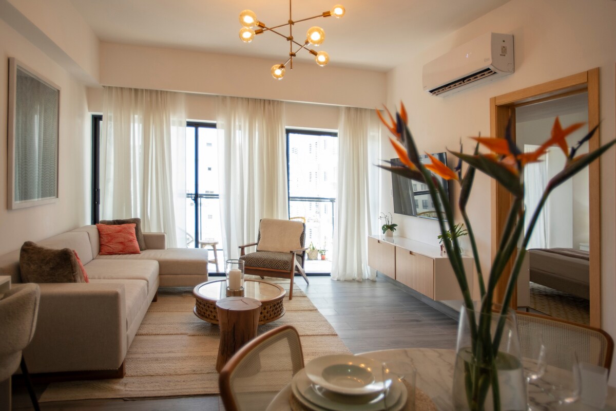Enjoy a stylish experience at this centrally-located place and walking distance from the best bars, restaurants and nightclubs in Santo Domingo. The historic city with its colonial buildings, museums, craft stores, bars and restaurants is located at just 10 min. drive while the international airport is less than 20. Among many things DR is well known by its beaches (BocaChica, Juan Lido, Etc,) and some of the best one are so close that you could enjoy their blessings just by taking a short trip