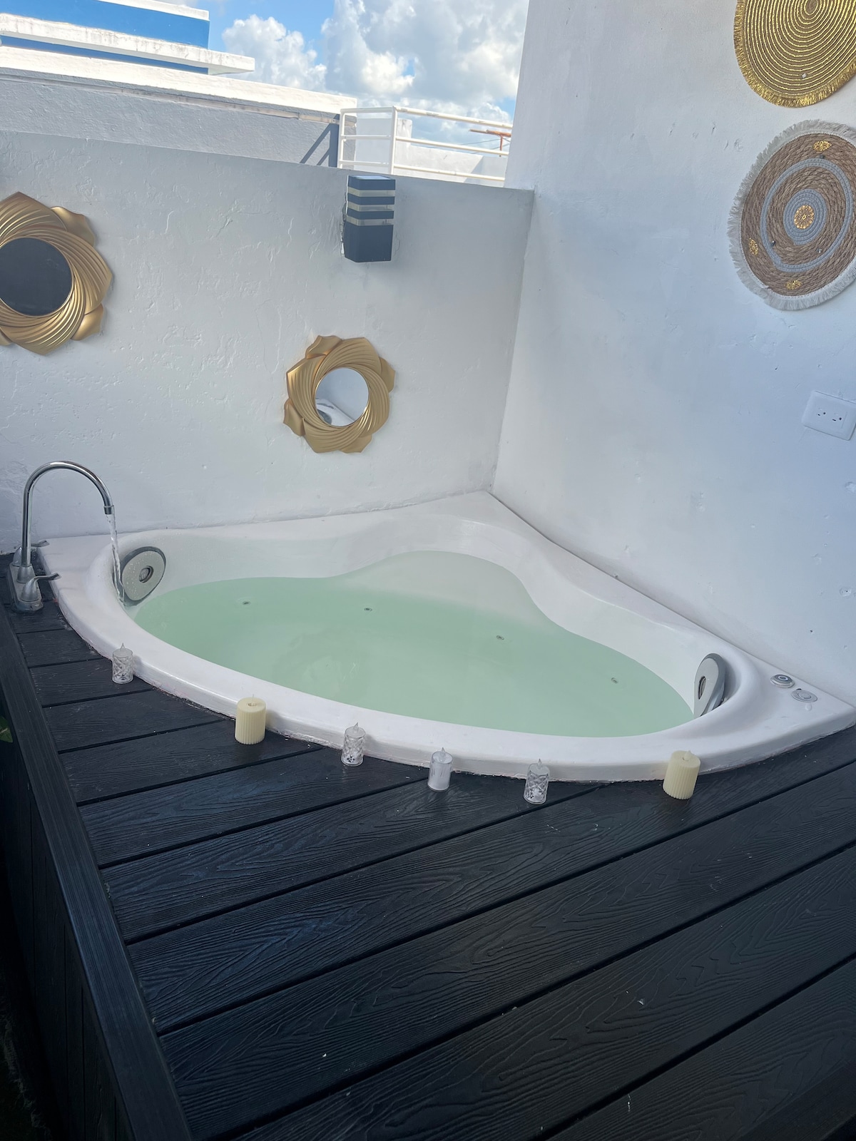 Sunbathe or chill out in a hanging chair, slip into the totally private rooftop Jacuzzi after sunset and gaze at the stars The jacuzzi size pool is cold water only....a refreshing option in the tropical heat. The apartment is on a quiet street near the cathedral and Parque Duarte in easy walking distance to historical sights, restaurants, bars, and cultural attractions. There is free street parking, we strongly recommend to leave the car at one of the guarded parking options nearby at night.