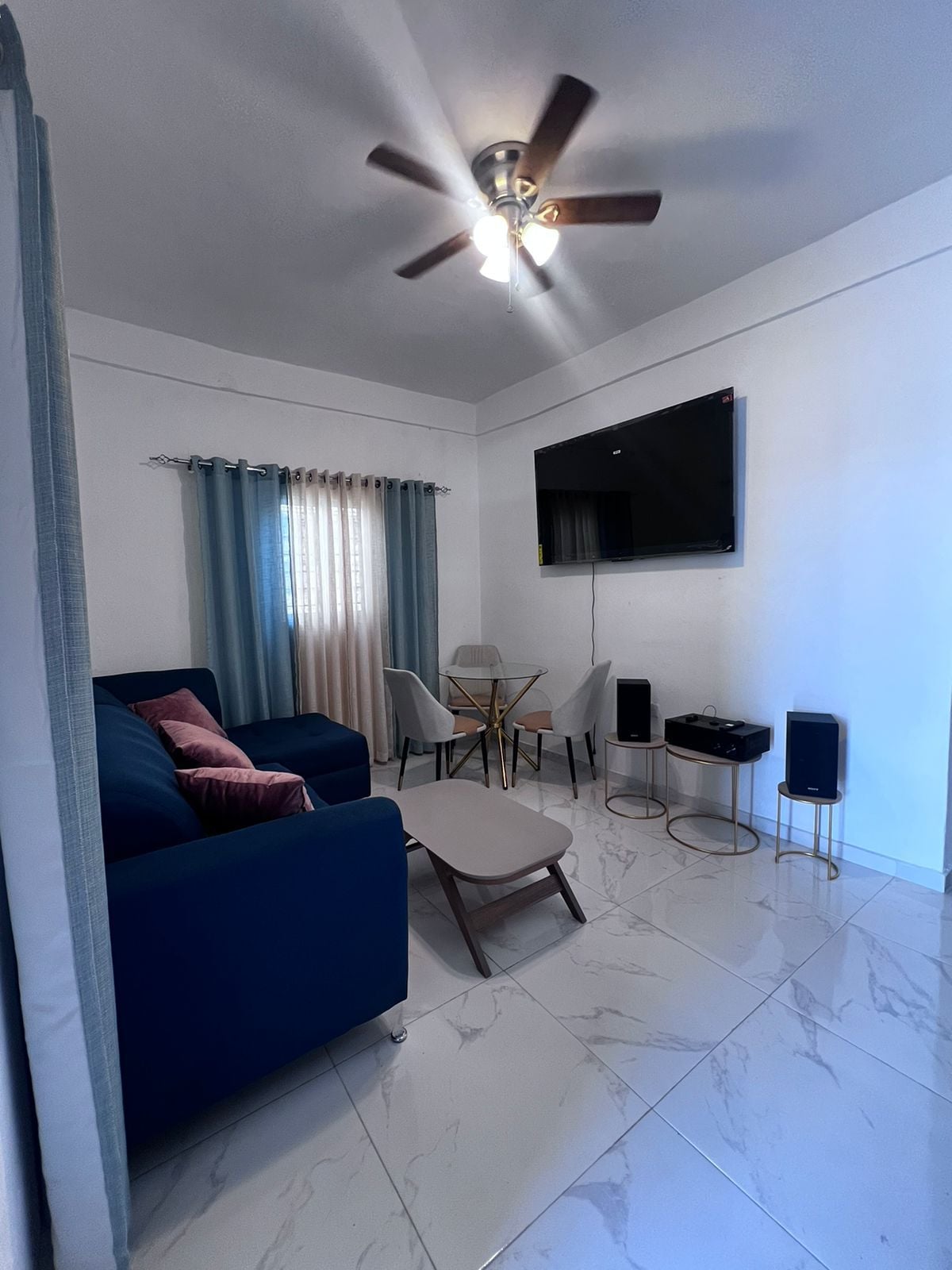 Relájate en este espacio tranquilo y elegante. Un hermoso apartamento, en una de las torres más espectaculares de SDQ. 🤩 Características: •Sala, con mueble cama, aire y TV. •1 habitación, bien equipada. •1 baño dentro de la hab. •Cocina. •Desayunador. •Lavadora/Secadora •1/2 Baño. •Recibidor. •1 Parqueo. •Balcón con hermosa vista. • Lujoso Lobby. • Ascensores última generación. Área social: •Piscina amplia y hermosa. •Bar en el área social. •BBQ. •Gimnasio. •Salon de reuniones.