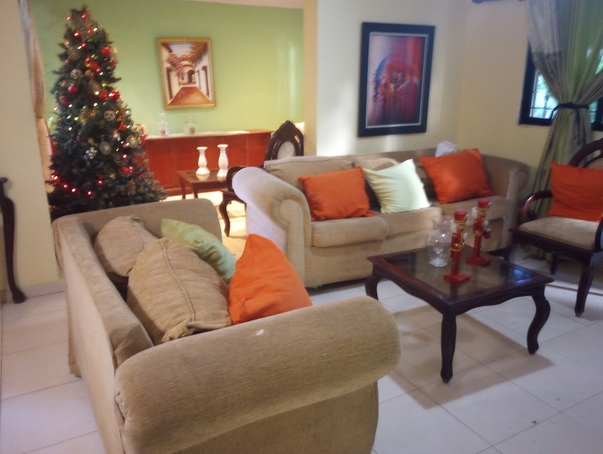 Have fun with the whole family at this stylish place. with the privacy and utilities necessary to have unforgettable moments, It has a full kitchen, full bathroom in each room, we have air conditioner in each room whenever there is electricity, There are fans in the wall and ceiling fan in the living room. Enter with an access code # It is a 4th floor there are no elevators! But we offer help with luggage as long as you give me advance notice.