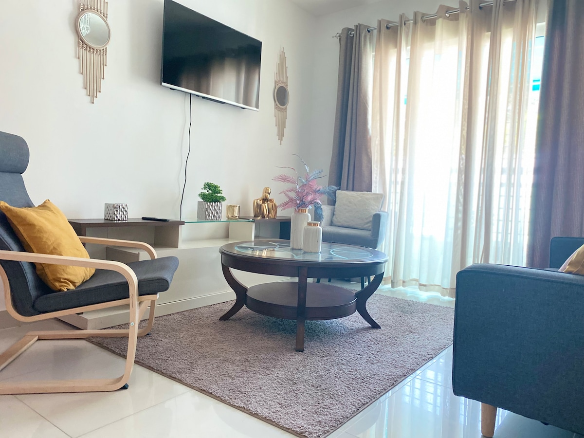 En este alojamiento se respira tranquilidad: ¡relájate con toda la familia! En él encontrarás todo lo necesario/importante a la hora de vacacional, a 10 minutos del aeropuerto(Aila)/15 minutos de la playa 2 minutos supermercado/2 minutos banco/1 minuto repostar combustibles/5 minutos centros comerciales Vías de acceso rápido/transporte público/privado área para niños/gazebo con barbacoa/parque privado para compartir al aire libre gimnasio control de acceso PARQUEO EXTRA (de pago)