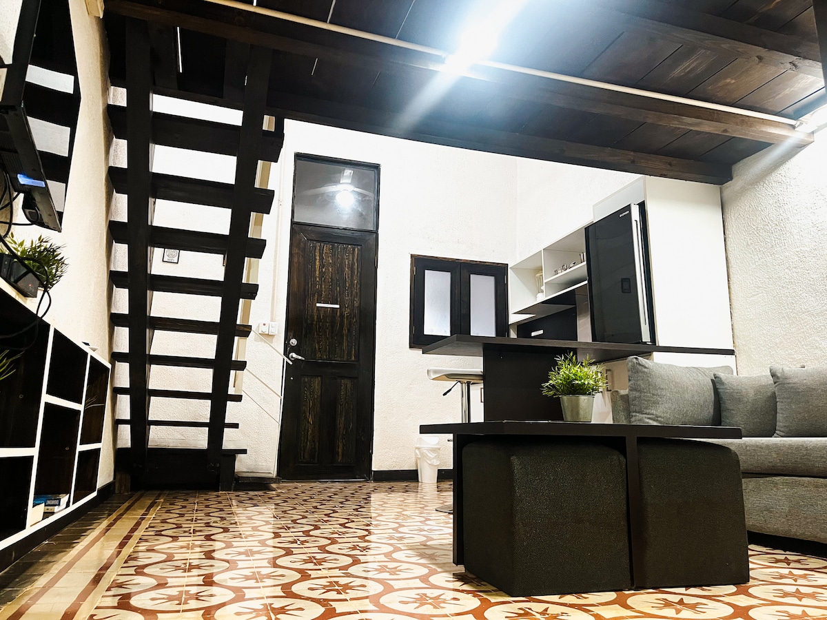 El loft de diseño moderno ubicado en el segundo piso de una casa de diseñador Francés con entrada independiente y terraza privada a minutos del parque Mirador Sur en una zona céntrica, residencial y tranquila de Santo Domingo. Con una fusión armoniosa entre lo urbano y lo natural. Grandes ventanales que permiten que la luz natural bañe el espacio, resaltando tonos tierra y verdes vibrantes. El loft con su propia terraza es un escape encantador en el corazón de la ciudad.