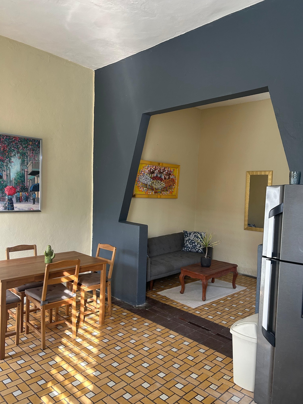 Acogedor, fresco y buena iluminación. Nuestros huéspedes tienen acceso gratuito a nuestra área social en el rooftop. Perfecto para parejas o amigos. Seguridad 24h, portón eléctrico, TV con Netflix, WiFi. A 2 mins. de estaciones de combustibles, a 5 mins del supermercado Bravo, Jumbo, Sirena, Pricesmart , McDonald, Wendy’s, Taco Bell, Pizza Hut, Little Caesars, Burger King, KFC, etc. A 30 mins del Aeropuerto de Las Américas y de la playa Boca Chica.