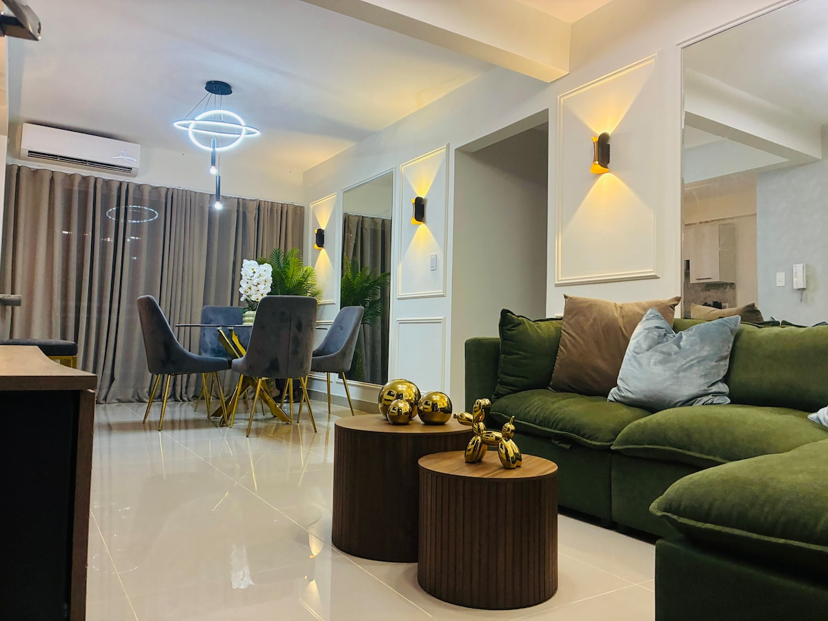 Relax in this peaceful, Safe, Elegant, and Comfortable Apartment luxury Decorated in Residencial Máximo Gómez, Santo Domingo. The space have 2 bedrooms, each with its own private bathroom and air conditioning, ideal for providing maximum privacy and comfort. It also has a spacious living room that includes a study area with a smart TV , cable and also air conditioning.