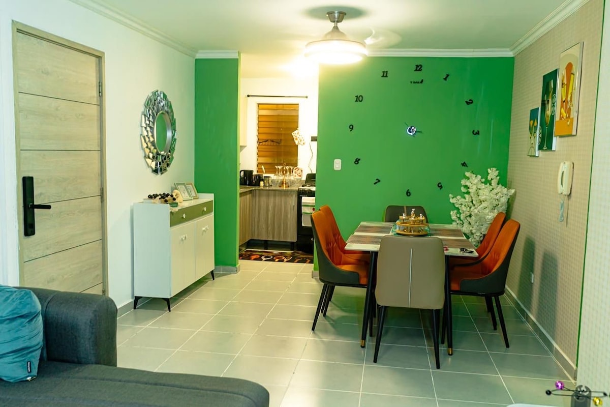 Luxurious and modern apartment with: Room, living room, dining room, laundry area, air conditioning, parking, swimming pool, social area and security camera. Flexible in arrival times and easy access to public transport. You will feel in a safe and warm environment, surrounded by elegance and above all concerned with disinfecting each area and element. "Your health is paramount to us."