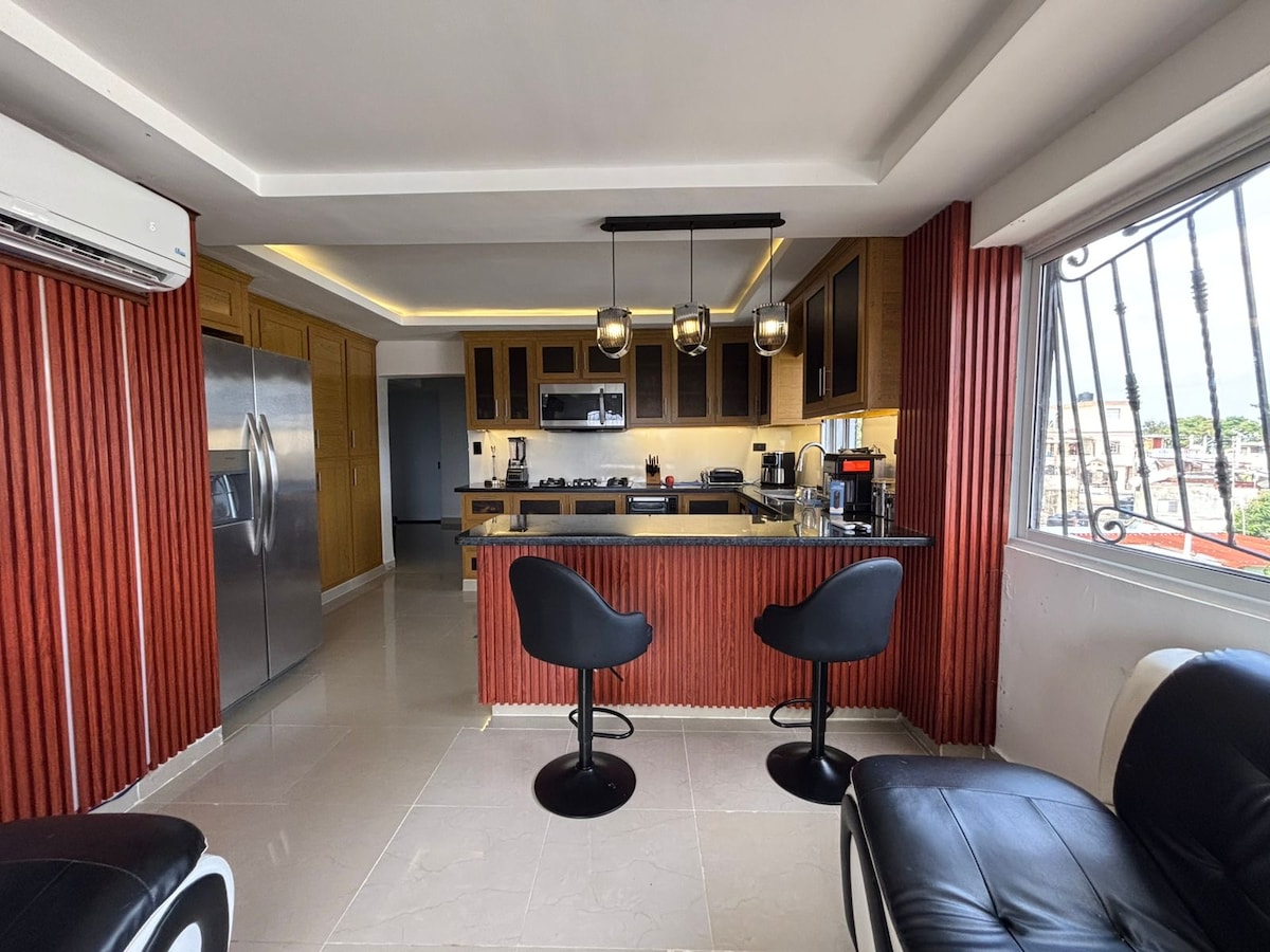 Relax ans Enjoy from this peaceful, bright, cozy and beautiful two bedroom apartament and get away from the noice without actually leaving the city. It is an exclusive condominium, inside of a secluded urbanization located in the outskirts of the city centre. With easy access to all the important places and direct way to Colonial Zone through Malecón, makes it perfect for business trips and family vacations. Terraces with Jacuzzi, Bbq, Pool Table... (Extra fee & previews reservation required).