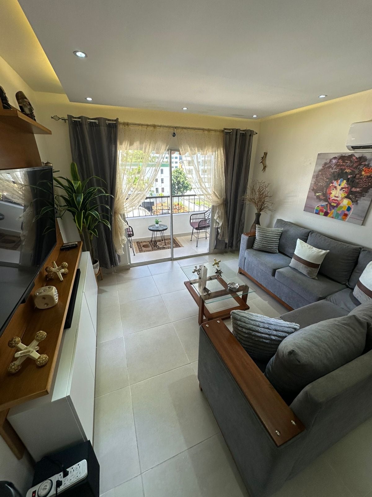 En este alojamiento se respira tranquilidad: ¡relájate con toda la familia! Espacioso, elegante y cómodo, disfruta de areas verde y parques, disponemos de seguridad las 24 horas , también tenemos una plaza comercial a 2 minutos , está ubicado a 20 minutos del aeropuerto las Américas, 25 minutos de la playa de boca chica y a 20 minutos del centro ciudad ; Este apartamento dispone de aire acondicionado en los 3 dormitorios y 2 baños completos.