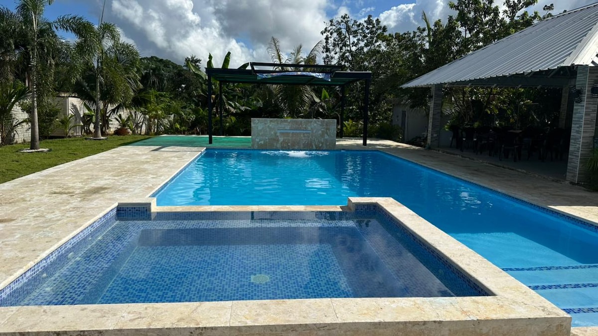 Relájate con toda la familia en este tranquilo lugar para quedarse. Estamos a 10 minutos de vistas golf & country club y a 15 minutos de cayacoa golf club. 45 minutos del aeropuerto de Internacional de Las Américas. 25 minutos de la ciudad de Santo Domingo 1 hora y 30 minutos de Santiago 15 minutos del Aeropuerto El Higüero 2 horas y 30 minutos de Punta Cana Piscina Climatizada (costo adicional de US$10 por hora, mínimo 5 horas) Espacio único y relajante en la montaña, cerca de la ciudad.