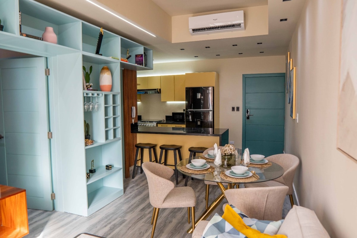 Enjoy a stylish experience at this centrally-located place and walking distance from the best bars, restaurants and nightclubs in Santo Domingo. The historic city with its colonial buildings, museums, craft stores, bars and restaurants is located at just 10 min. drive while the international airport is less than 20. Among many things DR is well known by its beaches (BocaChica, Juan Lido, Etc,) and some of the best one are so close that you could enjoy their blessings just by taking a short trip
