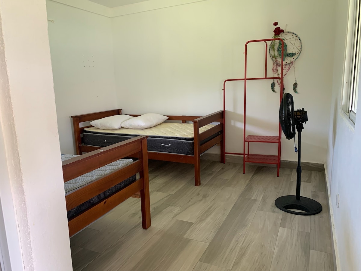 Stay in our Rustic Eco House and live like a true local in Santo Domingo. We're within walking distance to mountain slopes, rivers, and cocoa plantations where you can learn about the cocoa process. Our rental comes with 4 bedrooms and a capacity for 14 guests, 1 pool, 2 private bathrooms, and a kitchen that you're free to use any time. Beautiful natural environment, free coffee, and juice -- we've got everything you need. 50 min from AILA. 1.5 hours from Santiago. Minimarket Delivery Available