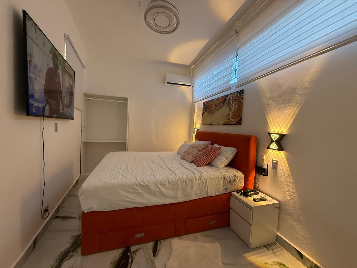 Disfruta de esta encantadora villa de dos pisos, dos habitaciones, dos baños, sofá cama, a pocos metros de la playa, en la mejor zona más exclusiva de Boca Chica, a solos pasos de los mejores Restaurantes: Boca Marina, St Tropez, Neptuno y Pelicano. Disfruta de un ambiente acogedor, un ambiente finamente amueblado para que usted y su familia tengan una magnifica experiencia. Recibirás un alojamiento único con un trato personalizado para que nunca te falte nada en el momento.