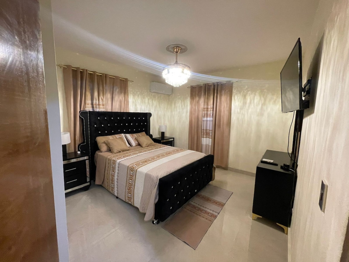 Relax in a king bed at a New Apartment. The decoration of my apartment is modern with the representation of Caribbean Adventures with Sand and Ocean colors. The apartment has all basic needs as well as a kitchen with full equipment, fast wifi, a parking lot, a fully equipped gym, a natural solarium, and an amazing social space with a pool, and BBQ. Please read the rules!