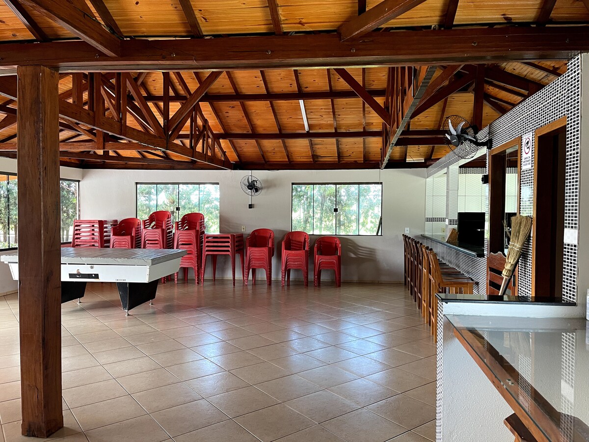 -Casa com piscina. -Area gourmet . -Lareira. -Condomínio com trilha entre as árvores. -Lago. -Praia no Rio para banhos. -Trapiche para pesca. -Quadras de esportes -Parquinhos - Academia de idoso, -Restaurante com Marmitex na semana -Nos finais de semana com almoços e no jantar porções e pizza. -Mercearia no restaurante.