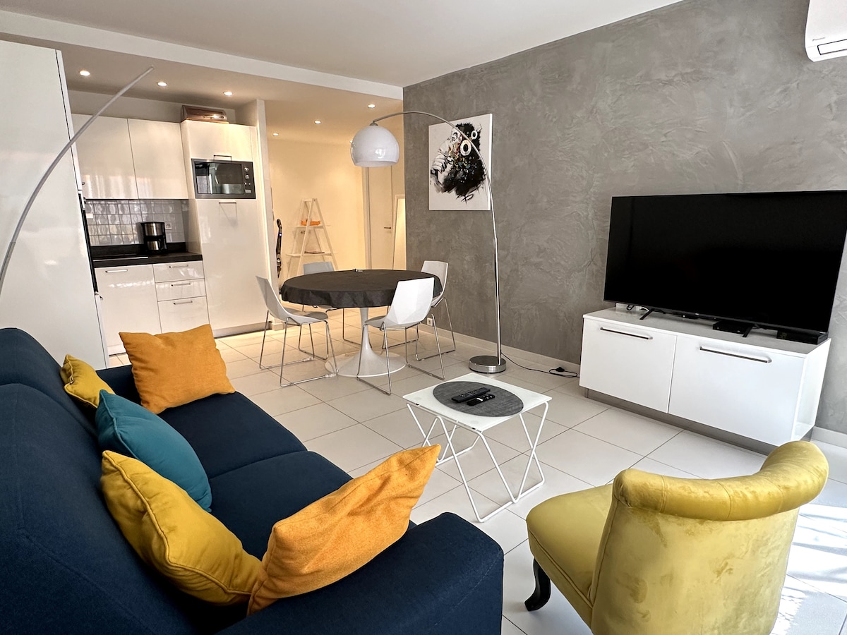 « SEAVIEWS BY JENNI MENTON »présente: Superbe 2 Pièces NEUF en Front de Mer, sur la Promenade du Soleil. 50 m2 de design,large terrasse de 18m2, vue mer comme sur un bateau de tout l'appartement. Conçu pour le confort de 4 personnes. Décoration très recherchée,matériaux et équipements haut de gamme. GARAGE FERMÉ* ASCENSEUR CLIM SMART TV INTERNET ILLIMITÉ HAUT DÉBIT ENCEINTE BLUETOOTH BOSE A quelques minutes à pied de tous les commerces et activités. Bus en bas de la résidence, gare à pied.