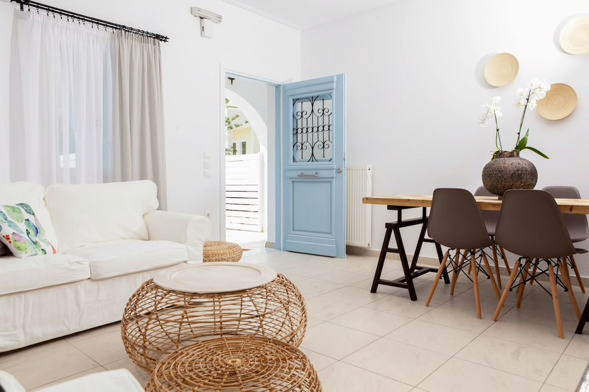 Welcome to Casa Nidito, a calm and minimalist home inspired by the island’s natural beauty. Built with earthy materials and soft tones, it offers sea views and a Mediterranean garden with a shaded spot to enjoy breakfast or a glass of wine. Inside, everything feels simple, comfortable, and connected to nature. Thoughtful touches and the gentle island breeze make every stay peaceful, grounding, and truly Santorini.