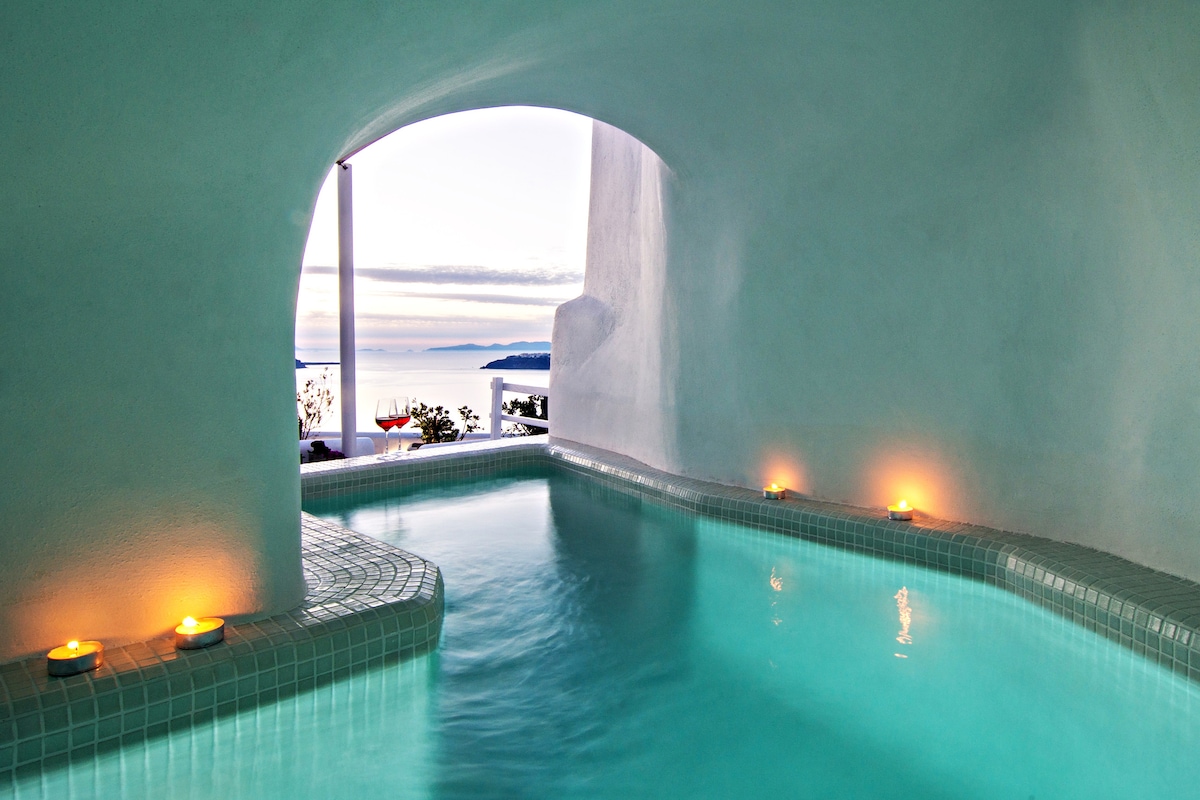 院子/3 卧室/希腊基克拉迪民宿,带洞穴泳池和日落景观