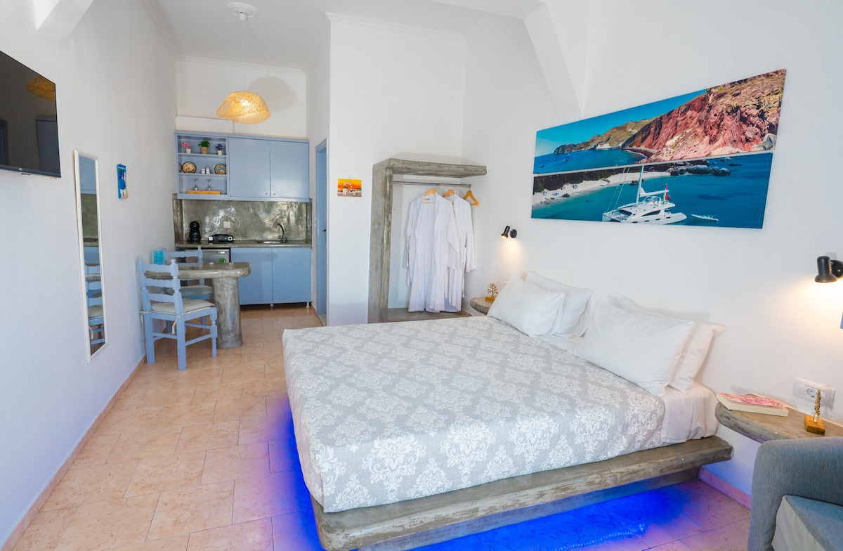 the SUPERIOR DOUBLE ROOM is in the heart of fira city in a very quiet area. is a new room with minimal design. There is a swimming pool at the property and and an indoor swimming pool heated. Around there are,supermarket a farmacy and lots of restaurants. the bus station is only 300 meter away. is our pleasure to host you in our room. fanourios kafouros