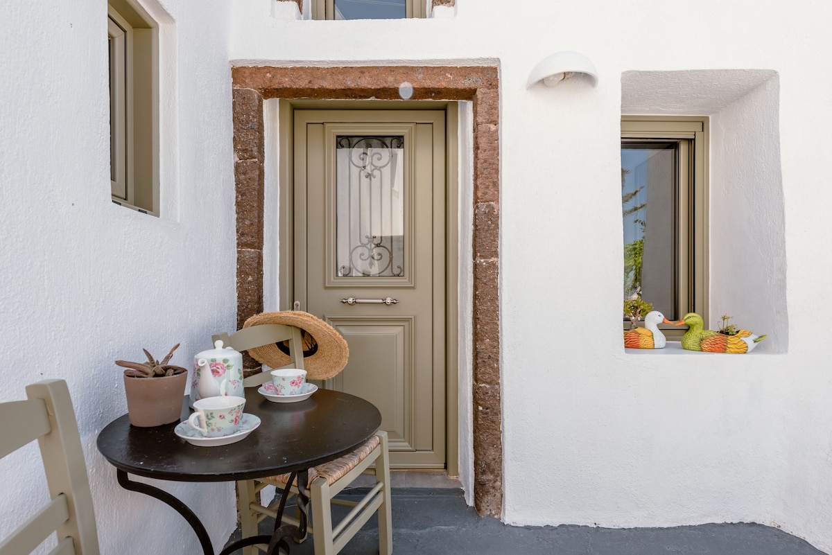 Villa Paride is the luxury honeymoon suite, with private balcony and breath taking caldera-volcano view! Can accommodate till 2 persons. Totally renovated on 2019, with king size bed, new fully equipped kitchen, new bathroom with shower. Balcony with breath taking ocean-caldera-volcano view! Terrace with sun chairs, outdoor private heated pool / jet tube, umbrellas. FREE fast WI-FI