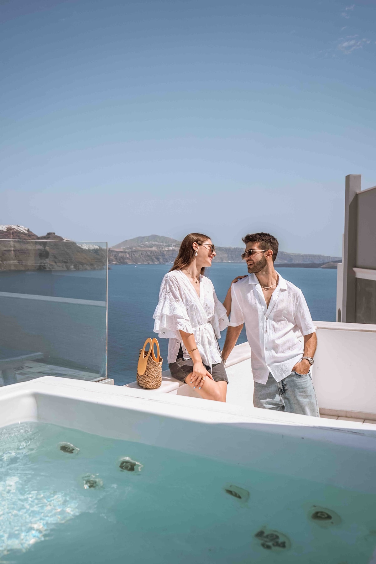 Cycladic Villa | Outdoor Hot Tub | Caldera View