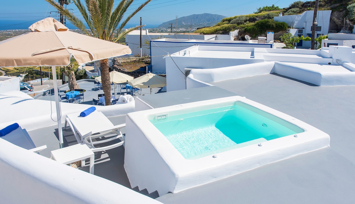 Early 20th century Santorini villa, 45 square meters, renovated with respect to local architecture. Aegean furniture combined with a quiet environment ideal for relaxation and rest. Jacuzzi with view to the sea and surroundings (but not isolated), for exclusive use by the villa guests anytime they want. Santorini breakfast with local food provided during your stay.