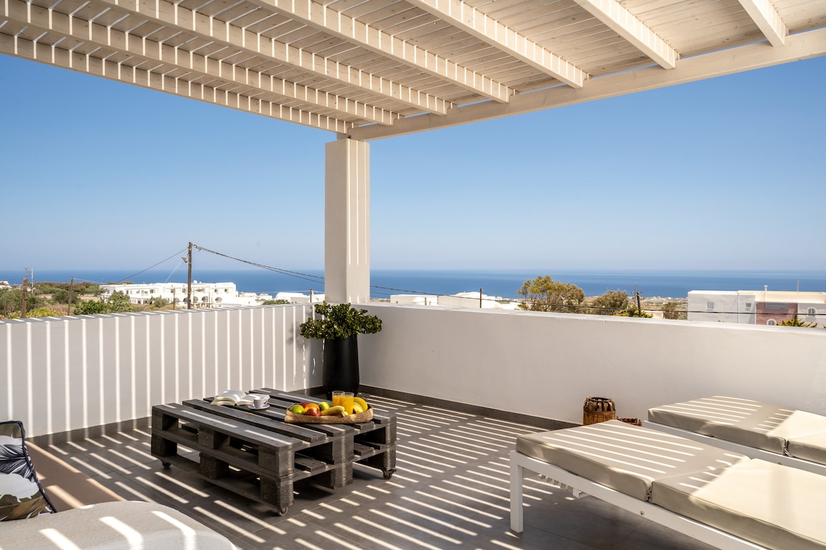 A superb, modern apartment within a 5 minute walk to Fira's main square, offering our guests a relaxing experience. A quiet neighborhood, but yet just 300 meters away from all restaurants, cafeterias, nightlife and of course the famous Caldera Cliff.