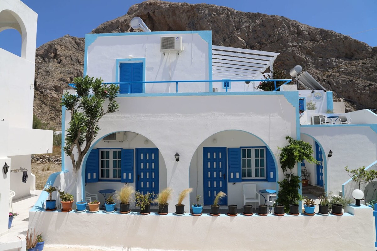 Just 30m from the black beach of Kamari, Sail Inn Studios & Apartments offer self-catering accommodation enjoying views of the Aegean Sea or mountain.The seaside promenade can be reached within a short walk.The bright air-conditioned studios include a kitchenette equipped with electric kettle and mini fridge and have en-suite bathroom with (URL HIDDEN) 50m from the complex there is a bus stop connecting to the capital Fira at around 10km. Santorini Airport is less than 10min away, 5km.