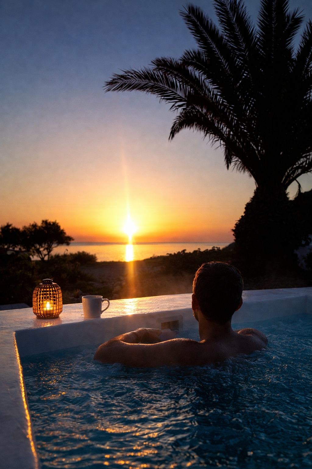 带卡尔德拉景观和热水浴缸的创世纪套房
