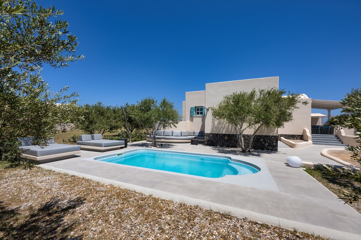 Nestled on the caldera cliffs of Oia, this newly built one-bedroom cave villa offers privacy, elegance, and stunning views of the volcanic islands. Blending Cycladic architecture with modern design, it features smooth curves, natural tones, and a calming interior with a king-size bed. The private terrace includes a mini swimming pool, perfect for relaxing while taking in the breathtaking scenery. An ideal retreat for couples seeking a serene Santorini escape.