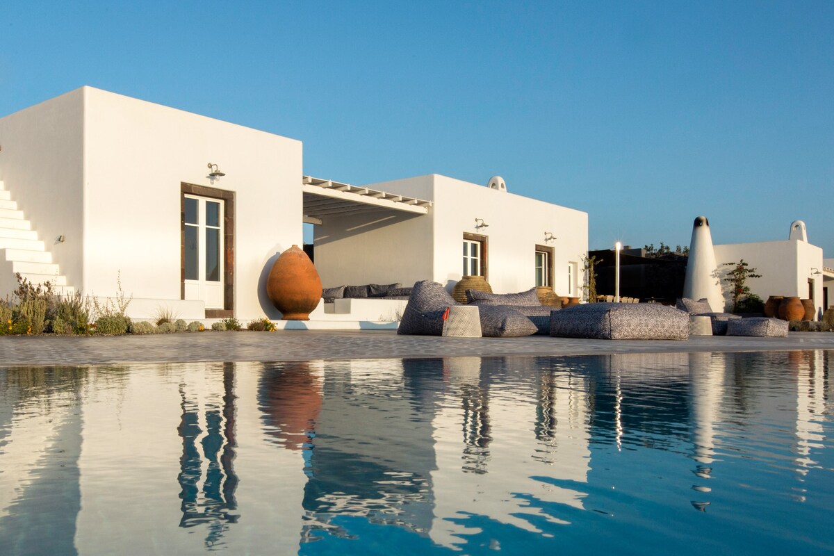 Please note: This property can be booked with less bedrooms. Christou Estate is one of the finest contemporary luxury properties on the Greek island of Santorini, situated just a short walk from the medieval town of Pyrgos. Comprising three distinct villas (two of which, Saligari and Chelona, can be rented individually), the estate is an outstanding choice for multiple families, groups of friends, or destination wedding guests seeking privacy, consummate style, and a prime location on these spectacular Aegean shores. Each villa features exquisite interior and alfresco living spaces—combining classic Cycladian simplicity with outstanding contemporary art and design—while shared amenities, including fitness facilities and a Hamman, provide a resort-like experience. Stunning, panoramic sea views grace the property. Villa Saligari is the estate's largest and most well-appointed villa. In addition to a private swimming pool, the terrace features a gorgeous Jacuzzi hot tub with expansive views, while a beautiful dining table and rustic grill await you beneath the dreamy canopy. Indoors, the luminous living room, with fireplace and large TV, adjoins a stunning, sea-view dining area, while the fully equipped kitchen includes espresso and coffee makers. Three superb bedrooms accommodate six guests, with two of the bedrooms enjoying access to the terrace. Villa Chelona, the second-largest villa, likewise features a private swimming pool, an ample terrace with breathtaking views, and a barbeque grill. The superb alfresco dining area includes a lovely table and comfortable lounge bench for savoring meals and cocktails in the dreamy breeze. Indoors, the fully equipped kitchen includes an espresso machine and coffee maker, while the living room is perfect for relishing fine Greek wine in the evening. Two superb bedrooms accommodate four guests. Villa Kota features the largest bedroom on the estate: a beautiful primary king suite. Its terrace enjoys a private pool, lovely sun loungers and shaded armchairs, and a yard with dining area. Indoors, a kitchenette adjoins a gorgeous living area. The Christou Estate is wonderfully located for enjoying the heavenly island of Santorini. Just ten minutes down the road is the medieval city of Pyrgos, with incredible, panoramic views of the island from its hilltop apex, along with lovely restaurants and cafés lining the charming streets. The port of Santorini, Perissa Beach, and Kamari Beach are minutes away by car. Copyright © Luxury Retreats. All rights reserved. Saligari Villa • Bedroom 1 - Primary: Queen size bed, Access to hall bathroom with stand-alone shower, Television, Air conditioning, Access to shared balcony • Bedroom 2: Queen size bed (or Two single size beds), Access to hall bathroom with stand-alone shower, Television, Ceiling fan, Access to shared balcony • Bedroom 3: Two single size beds, Access to hall bathroom with stand-alone shower, Television, Ceiling fan Chelona Villa • Bedroom 4 - Primary: Double size bed, Ensuite bathroom with stand-alone shower, Air conditioning • Bedroom 5: Queen size bed (or Two single size beds), Access to hall bathroom with shower/nath combo, Ground fan Kota Villa • Bedroom 6 - Primary: King size bed, bathroom with stand-alone shower, Air conditioning FEATURES & AMENITIES • Wine fridge • More under “What this place offers” below OUTDOOR FEATURES • Terrace • Hammam STAFF & SERVICES Included: • Welcome wine & fruits • Hostess (2 hours daily) • Pool maintenance • Hammam use (one hour daily) • More under “Add-on services” below Extra cost (advance notice may be required): • Activities and excursions
