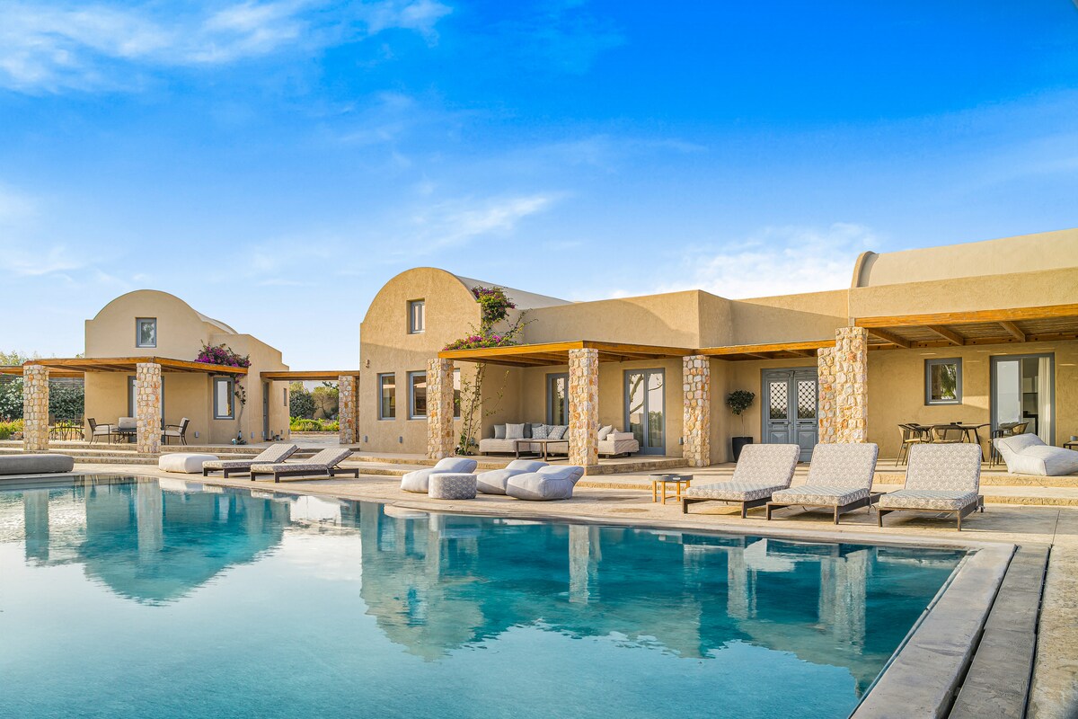 A former winery estate has been thoughtfully transformed into a welcoming holiday sanctuary for discerning travelers seeking to experience summertime lavishness and authentic island living. This villa features 4 stunning bedrooms and superb indoors and outdoors living areas, along with a Yoga room and a one-of-a-kind barrel sauna for endless moments of indulgent relaxation. An immersive experience of privacy and comfort awaits, just a stone’s throw away from the heart of Santorini’s wine region.