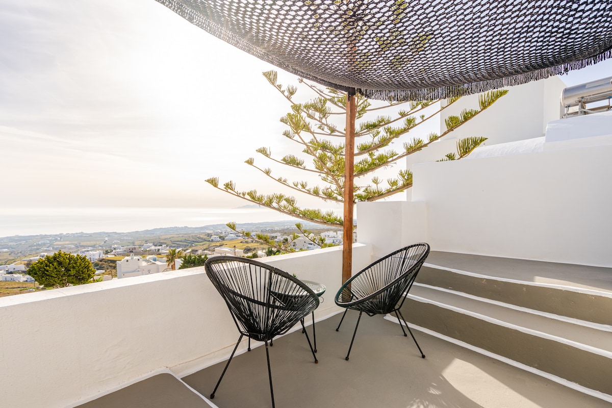 Sunrise Studio is a traditional Cycladic apartment located in the heart of Santorini. Just 7 minutes walking distance from the centre of Fira and from the unique view of Caldera. It is fully equipped with a private bathroom, double size loft bed (you need to climb to get to the bed), sofa, coffee table, free high speed Internet, wifi, wardrobe, 32 inch smart TV, private balcony with breathtaking seaview and it is fully climatised. Free cleaning daily. Tip: Don't miss the unique Sunrise...