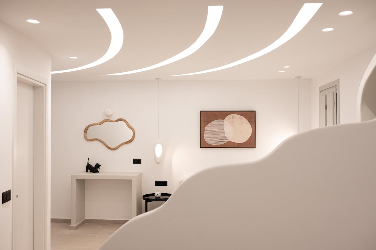 The exceptional space of Terra e Lavoro in Santorini was ideally designed to offer a personalized experience of enjoyment to those seeking a luxurious retreat on their vacation. The Terra e Lavoro luxurious apartment in Exo Gonia is a modern Villa in Santorini with traditional architecture, ready to welcome its guests and lead them to unique moments of relaxation.