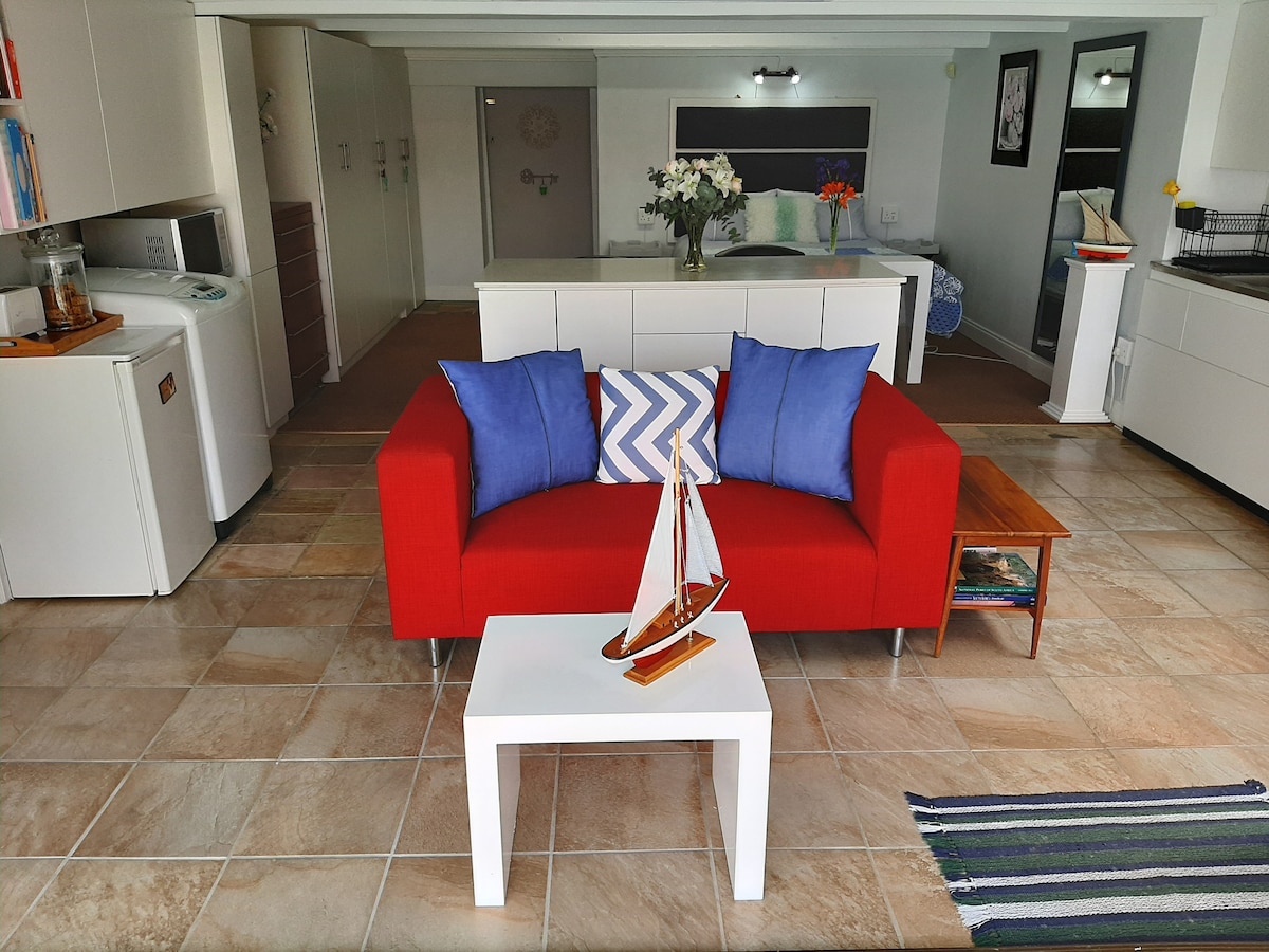"Twisting By The Pool" is a 47m2 ground level Studio Apartment ,located in a large secure property, just 200m from the Mossel Bay Golf course and club house. Close to the famous blue flag Santos beach. Open plan kitchen (fully equipped) Linen/Towels included. Laundry facilities (in flat) Washing machine and dryer. Free Wi-Fi and secure parking on site with own private entrance. Braai facility available and shared swimming pool. Shopping Mall 1km. Please Note: No Pets and Visitors Allowed!
