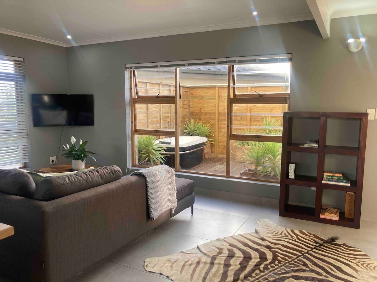 A unique and romantic escape. Wether it’s an anniversary, honeymoon or just spoiling yourself, this is an unparalleled stay with views and amenities to make sure you experience this amazing estate. Open plan designed with an amazing scenic view of the ocean and Pinnacle Golf Estate. Please note Free Parking on the premises with some stairs.