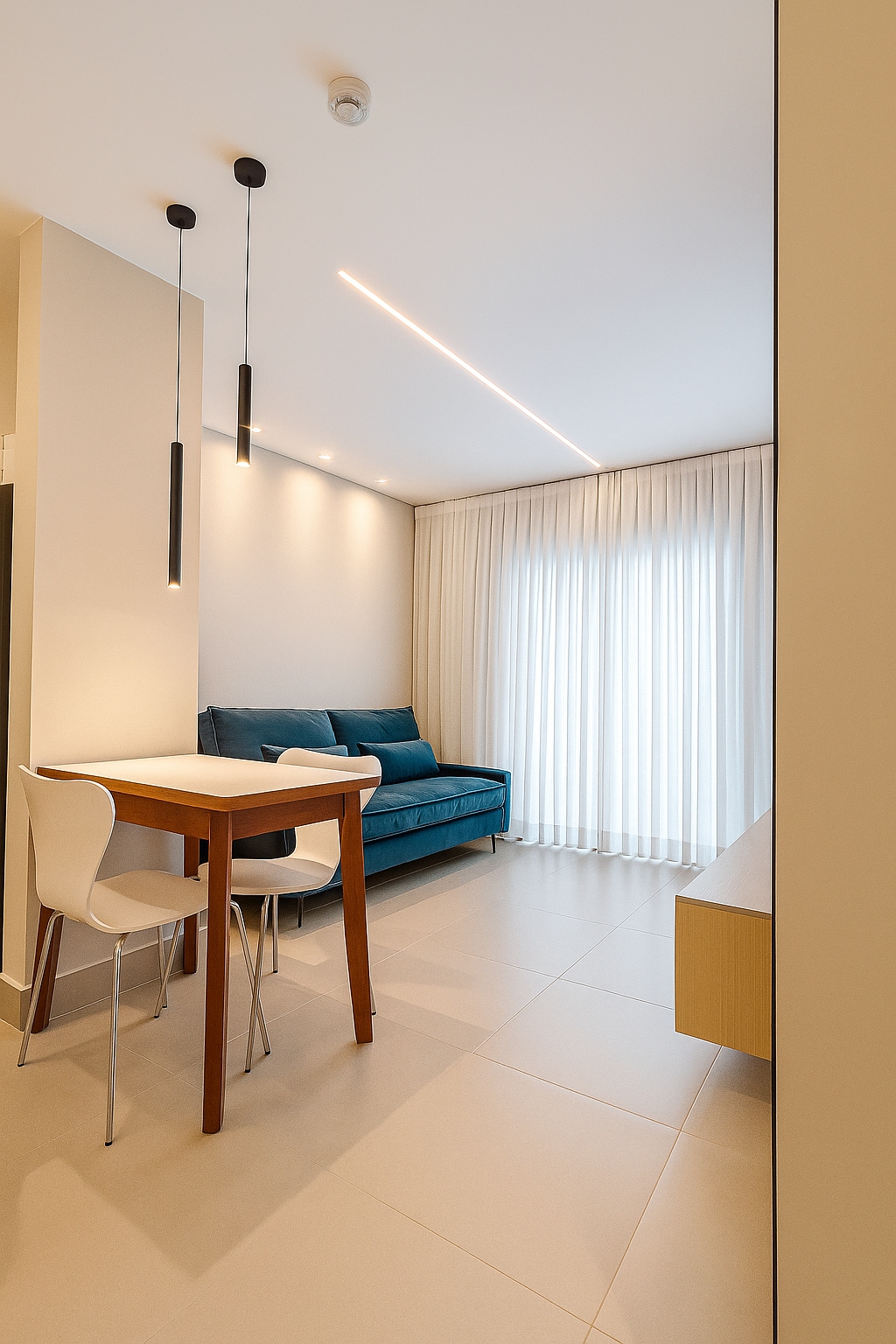 Este Studio recém inaugurado é único e tem um estilo muito próprio que reúne, em cada detalhe, um particular especial em aconchego, praticidade e charme. Com iluminação e móveis modernos e muito práticos … tudo pensado e criado com muito carinho dedicado aos nossos hóspedes 🩵 Em frente ao Mar… o que encanta ainda mais nosso espaço! Nosso objetivo maior é surpreender, sempre! Desejamos que todos desfrutem de momentos marcantes e muito especiais, assim como nós …