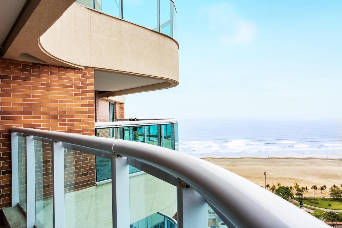 Descubra o conforto de um apto moderno em frente a praia com vista incrível para as praias de Santos e São Vicente, o predio fica na divisa entre as cidades Apto amplo e bem ventilado de 1 quarto, com uma cama casal no quarto e 2 sofás camas na sala para até 6 pessoas Portaria 24 horas, câmeras de segurança e elevador Wi-Fi, ar condicionado no quarto e sala e cozinha completa Oferecemos roupas de cama e banho Estacionamento com vaga coletiva para 1 carro Não temos rede de proteção nas janelas