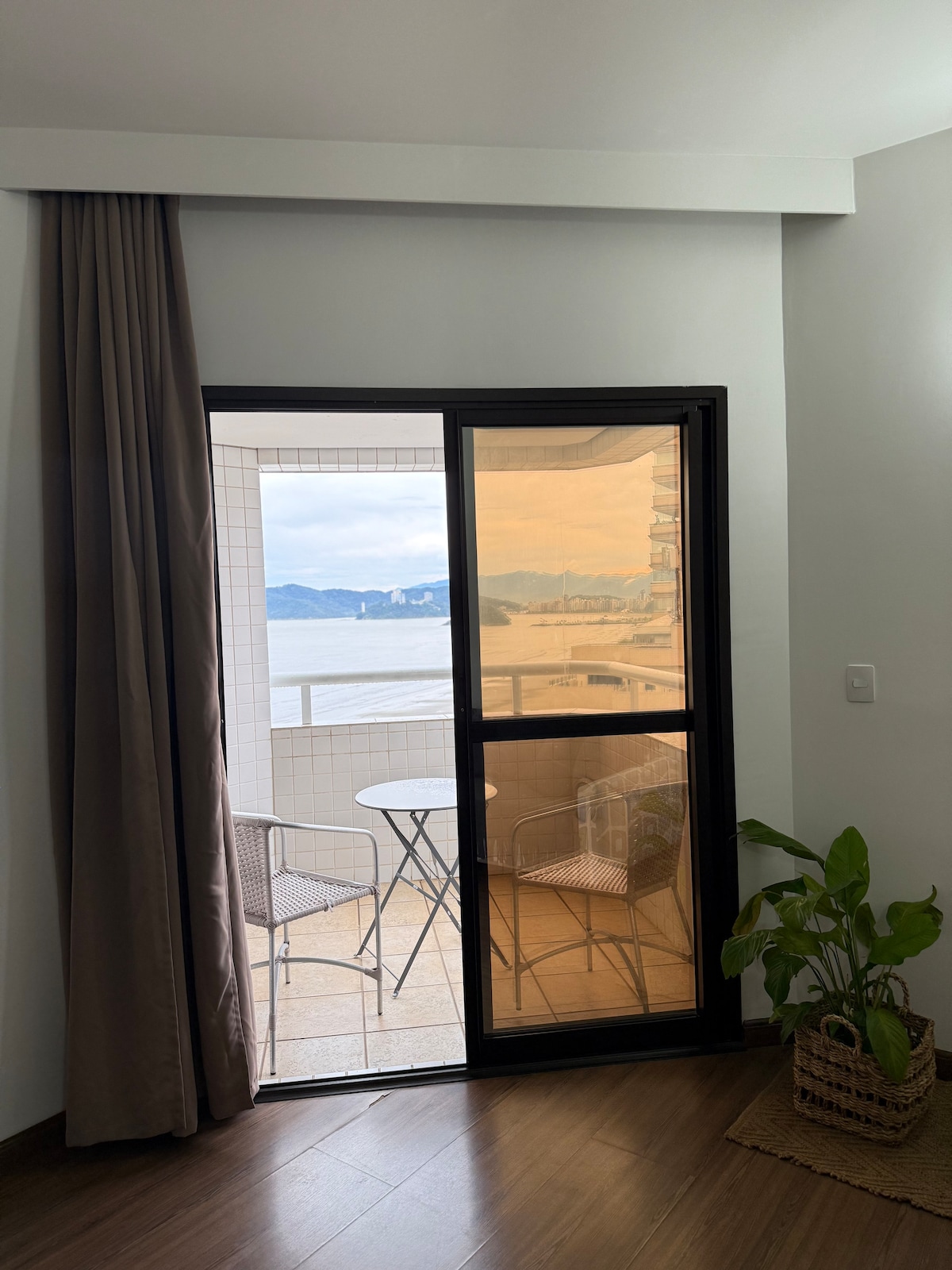 Descubra o conforto de um apto moderno em frente a praia com vista incrível para as praias de Santos e São Vicente, o predio fica na divisa entre as cidades Apto amplo e bem ventilado de 1 quarto, com uma cama casal no quarto e 2 sofás camas na sala para até 6 pessoas Portaria 24 horas, câmeras de segurança e elevador Wi-Fi, ar condicionado no quarto e sala e cozinha completa Oferecemos roupas de cama e banho Estacionamento com vaga coletiva para 1 carro Não temos rede de proteção nas janelas